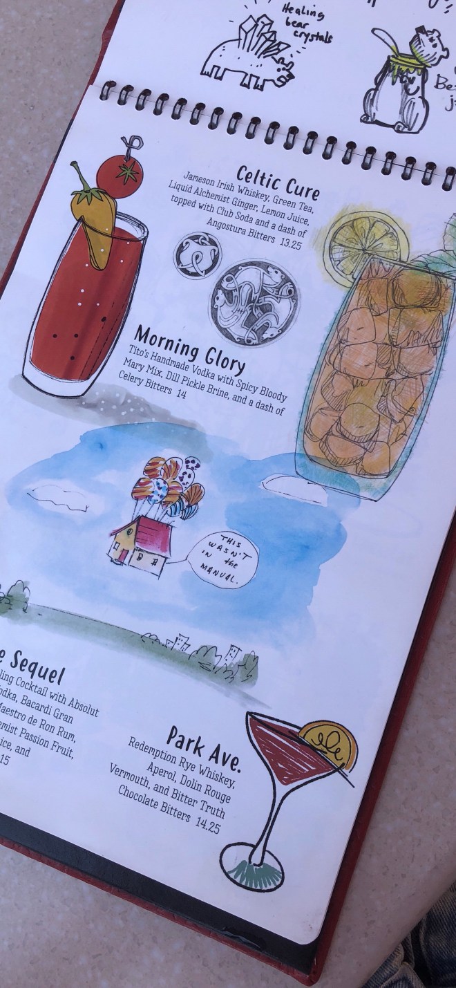 It is no secret that I have always ben a FAN of the Cove Bar, which has recently been upgraded to Lamplight Lounge. I have celebrated birthdays, anniversaries, and random Saturdays at this spot for as long as we have been APs. The location is truly iconic, with up and downstairs patios overlooking Pixar Pier. It is easily one of my DCA must do’s! Not to mention this place has an extensive cocktail and beer menu, Lobster Nachos (plus lots of other delicious eats), and a full bar. This place has the type of atmosphere that is amazing enough to go for a meal even if you don’t drink, but it is also absolutely the place to go if you are a cocktail person. The menu is extensive and creative, and of course themed to the Pixar films. Seriously it is one of my favorite places on the planet.
