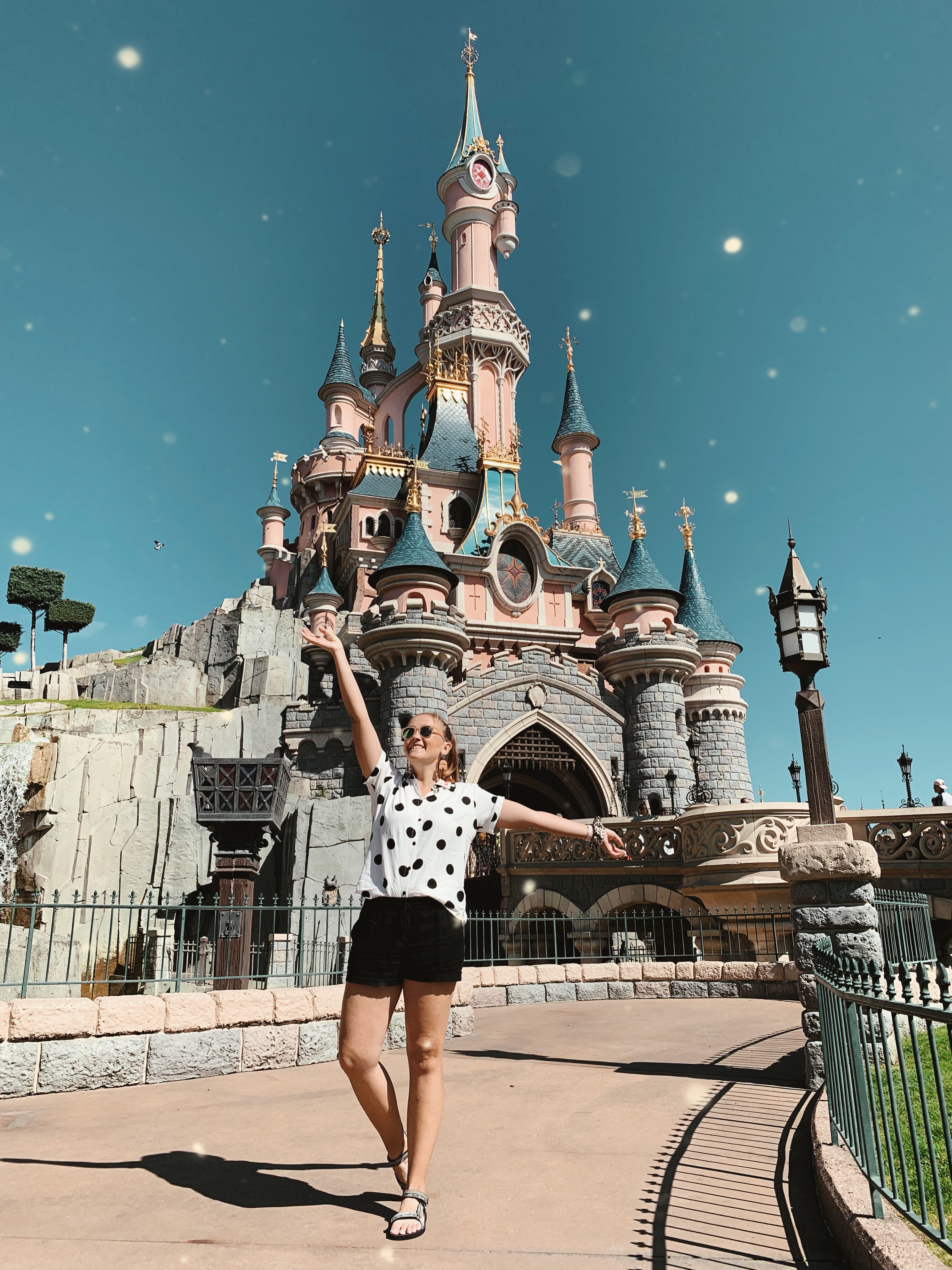 Last thing on food and drinks, while they do serve alcohol in both parks, it is not just the walk up and order booze like we are used to in the states. In Studios Park we saw beer on the menu, so we ordered a beer each, but they said that we had to order food with our drinks, but at that point we felt committed so we awkwardly ordered fries and then realized we had to ordder a thing of fries PER beer so we spent like 25 Euro on two beers and two things of fries on accident… would not recommend just go to the sports bar in Disney Village. In Disneyland there’s a spot on the end of Main Street called Victoria’s which serves wine and champagne and adorable milkshakes, but you have to order through a waiter so… it took a long time to get our orders. This was still a must do for me though because let me tell you having a glass of real French champagne within view of the castle?! DREAMY. (In reality, it was a little rushed for us because we were trying to knock off our bucket list as our time to head to the train rapidly approached, one of my regrets was not doing this sooner so I could have enjoyed it more!)