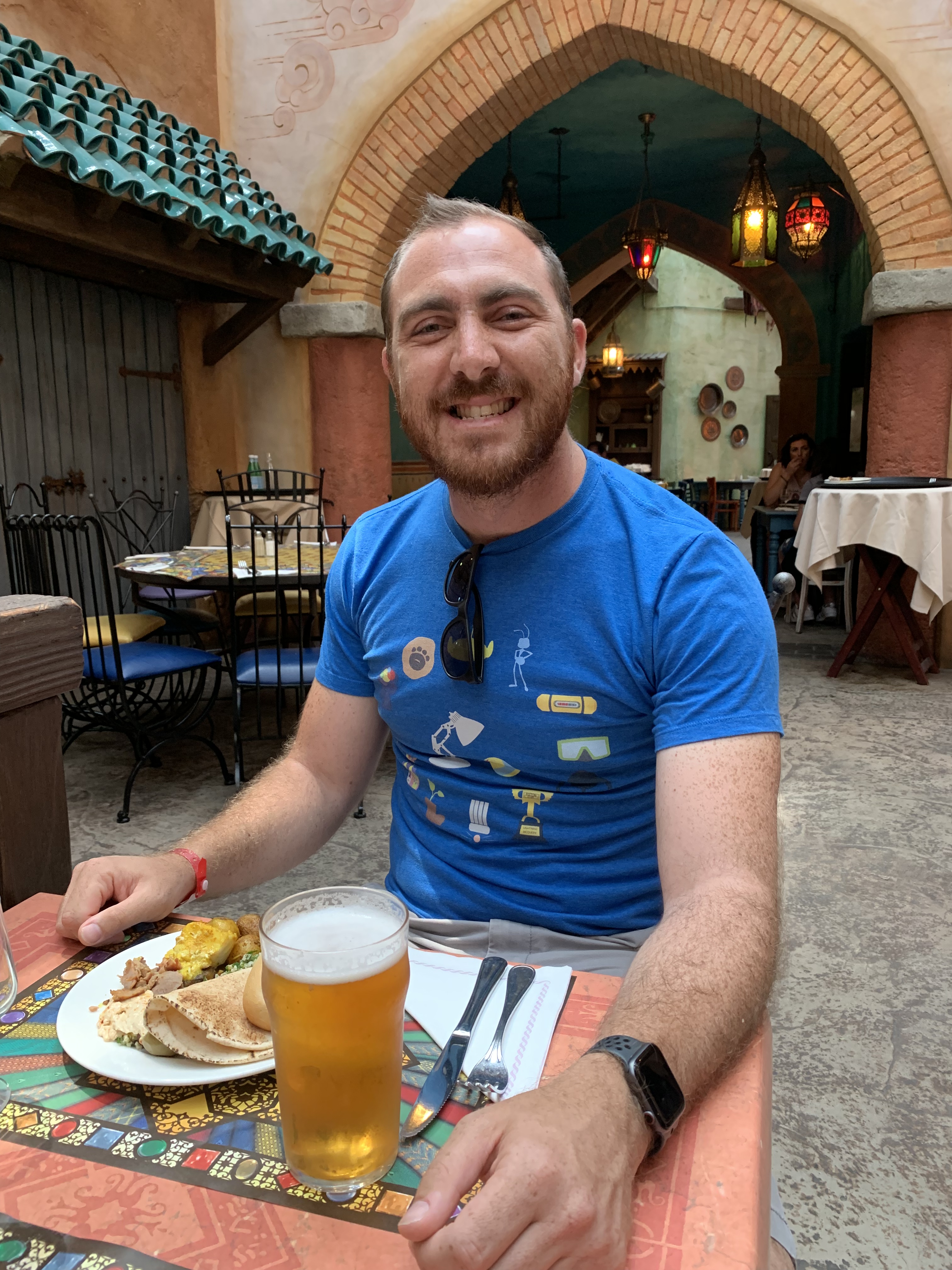 - Agrabah Cafe in Adventureland is AMAZING annnnnnd our meal plan was valid here! They recommend you have a reservation so we sheepishly approached the cast member at the front and asked if they had room for lunch. She said for 2 they did, but we were limited to sitting in the least exciting room – which was totally fine for us because we didn’t have reservations, and in general we try to not be picky humans, especially when traveling. It was a delicious middle-eastern style buffet and I ate my weight in hummus and olives and everything was so good. I feel so lucky that we were able to sneak in for lunch there. (and that it was pre-paid in our bundle)